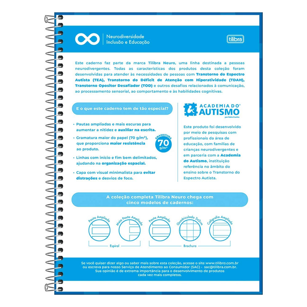 Todos os produtos da coleção Tilibra Neuro possuem as seguintes características: