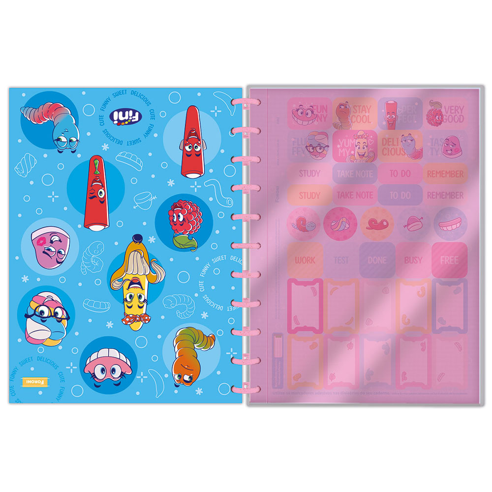 Fini é a marca de balas e doces mais reconhecida entre jovens de todas as idades. Através dos seus deliciosos produtos, a FINI tem a capacidade de trazer fantasia, criatividade, alegria e muita leveza para a vida de seus consumidores! E para deixar os dias de aula ainda mais saborosos e divertidos, a Foroni apresenta a coleção de cadernos Fini, com um cheirinho especial que deixará a galera apaixonada por mais esta novidade!