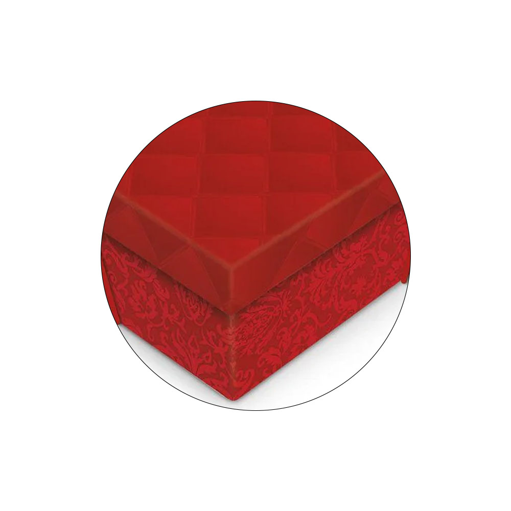 Com dimensões de 46x33x14 cm, oferece amplo espaço para diversos tipos de presentes. Seu acabamento em relevo tweed e a cor vermelha vibrante adicionam um toque de charme e sofisticação.