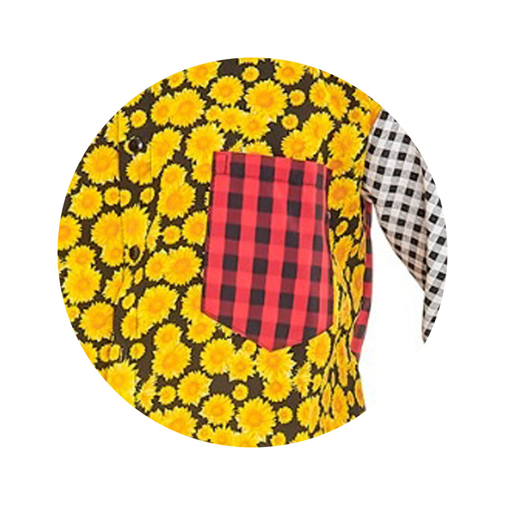 Caracteristicas: Estampa de Girassol, Xadrez Vermelho e Xadrez Preto e Branco; Acompanha bolso; Fechamento com botões