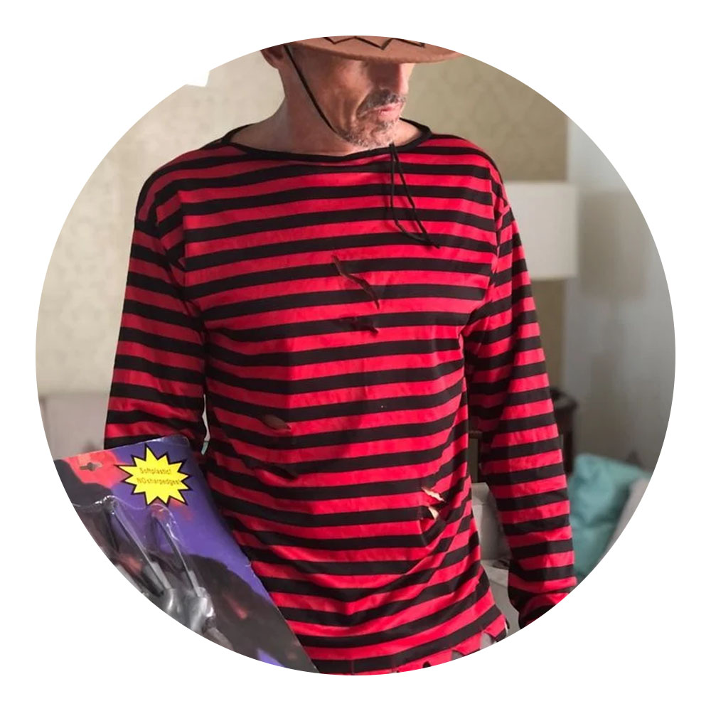 Transforme seu visual com a icônica camisa inspirada no lendário personagem Freddy Krueger. Ideal para fãs de filmes de terror, festas temáticas, Halloween ou para quem busca um estilo marcante e nostálgico.