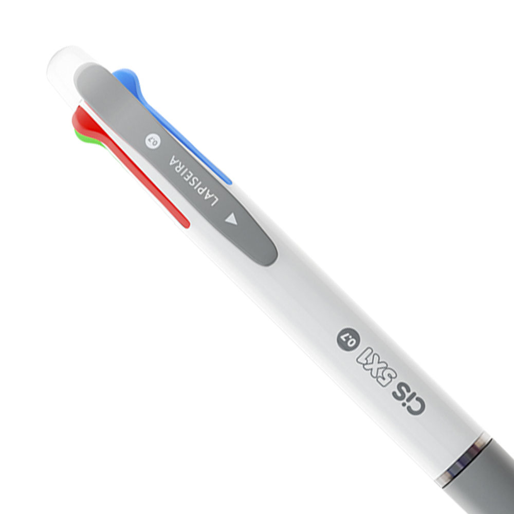 Caneta Esferográfica 4 Cores + Lapiseira 0.7mm 5×1 Branco CIS