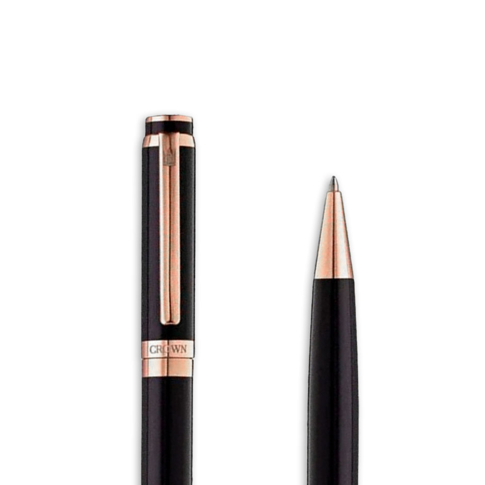 Caneta Crown Esferográfica Metal Onix Preto/Rose Tinta Azul