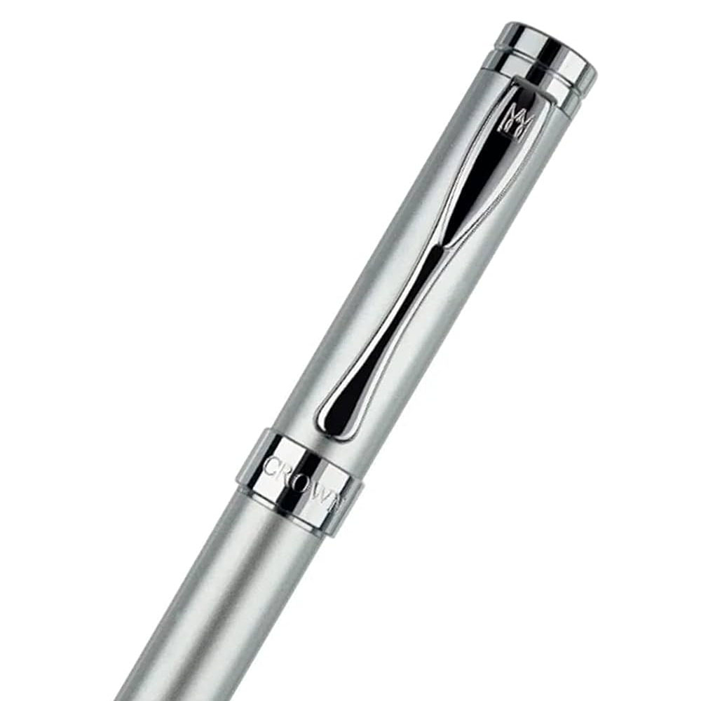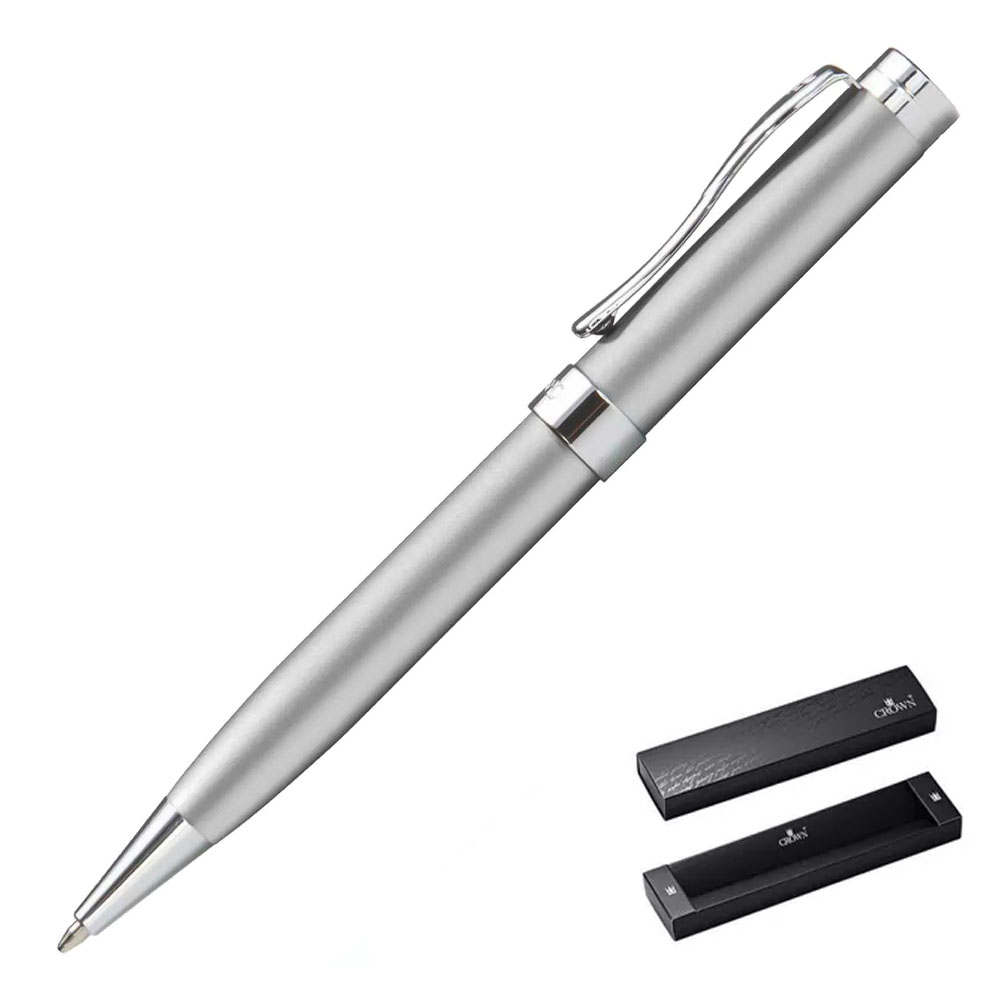 Prata com detalhes cromados tem sua escrita com conforto e maciez. Mecanismo Torção e com carga esferograficas crown padrão parker