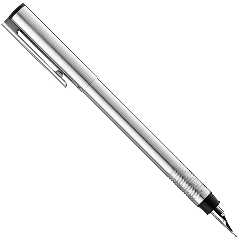 Caneta Crown Tinteiro Metal Iron Prata Tinta Azul
