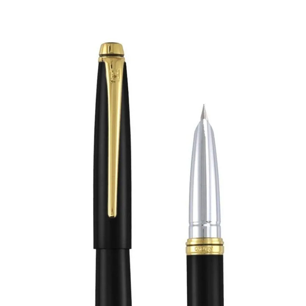 Preta com detalhes dourados tem sua escrita com conforto e maciez. Sistema de abertura por Tampa e com carga tinteiro cartucho tinteiro crown