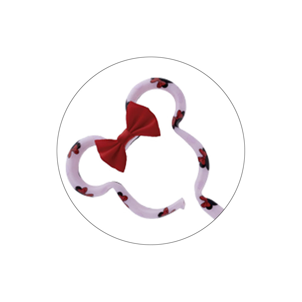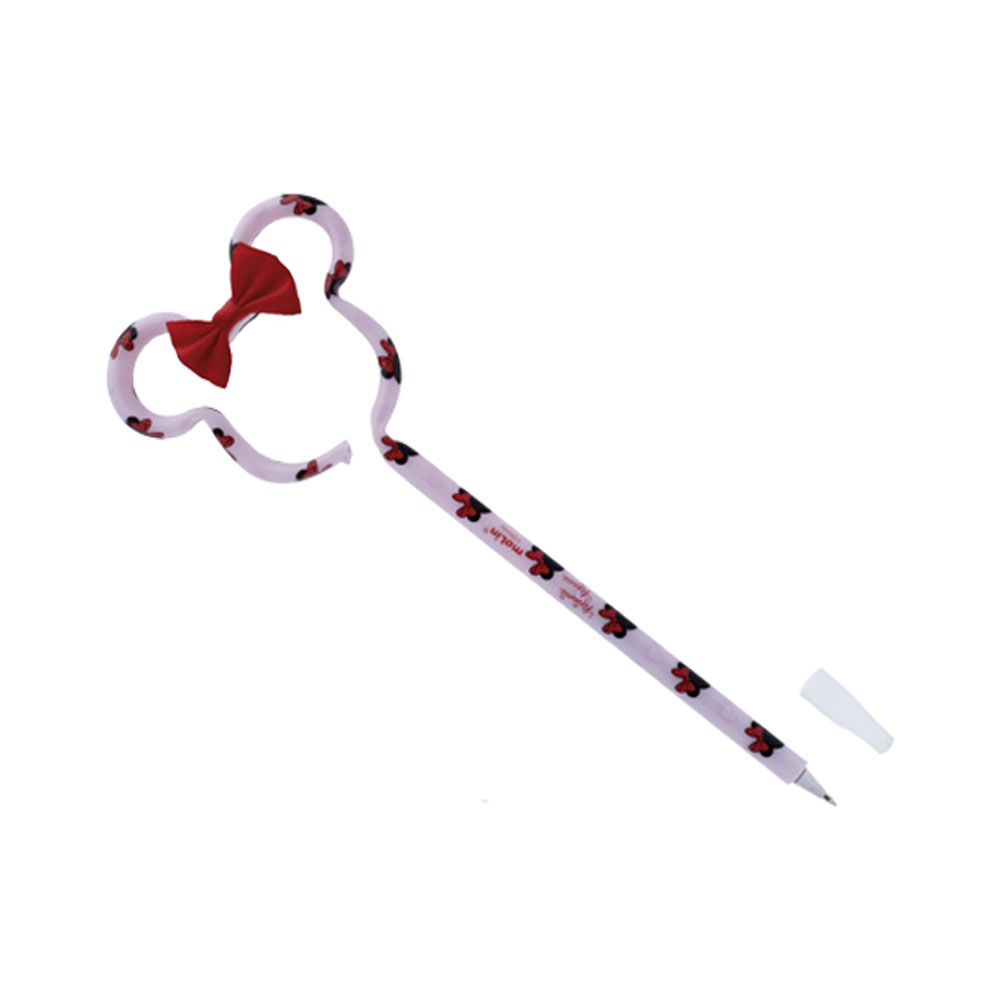 Linda caneta decorada, com lacinho e formato que associa a Minnie Mouse da Disney.