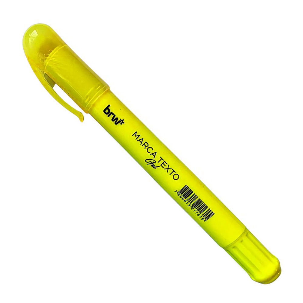 Marca Texto BRW Fluorescente em Gel cor Amarelo – CA9001 O marcador fluorescente amarelo em gel BRW é perfeito para o dia a dia, seja para uso escolar ou no escritório. Com o corpo retrátil, cores vibrantes e a ponta macia, o destaque nos textos é preciso e ao mesmo tempo suave, sem perder a tonalidade da cor. Sua tinta a base de gel não resseca e não borra, inclusive os textos impressos à jato de tinta! O marca-texto BRW possui alta durabilidade, secagem instantânea e não ultrapassa o verso da página, o que o torna ideal para grifar em folhas mais finas. Ponta redonda em gel Escrita 4mm Não tóxico