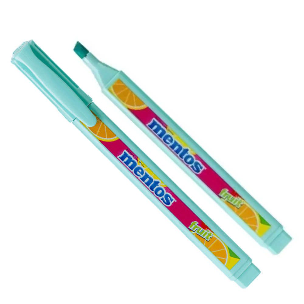 Marca-texto Mentos veio para iluminar seus dias com cores intensas e um aroma delicioso. Com uma ponta chanfrada que desliza suavemente sobre o papel, ele destaca informações importantes com estilo. O design anatômico em formato “D” é inovador e ergonômico.