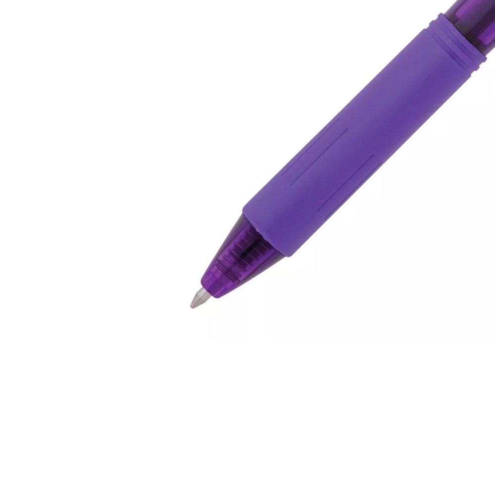 Caneta Pentel Caneta retrátil com botão lateral, corpo triangular e grip emborrachado para melhor encaixe e conforto da mão. Escrita suave e cores vivas. Excelente custo x benefício! Ponta esférica metálica de 0.7mm.