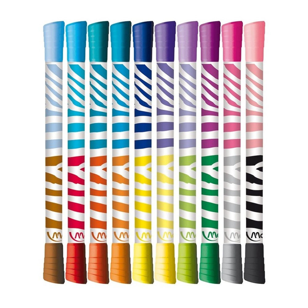 Caneta Maped Hidrografica Color Peps Duo 20 Cores Contém 10 canetas com 2 pontas = 20 cores Características: Duas cores em uma só caneta Ocupa metade do espaço no estojo escolar Dupla tampa ventilada Decoração divertida, zebrada Ponta com 4,75 mm de diâmetro