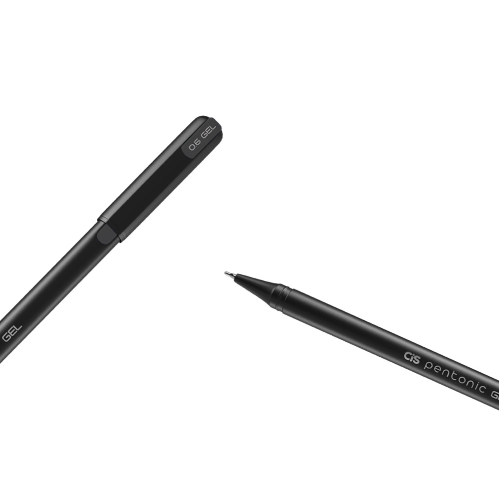 A caneta Cis Pentonic é uma caneta de design moderno super macia de escrever. Tem o corpo da cor preta e ponta com o indicador da cor da caneta.