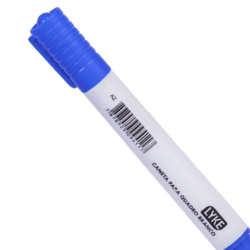 Marcador para Quadro Branco LYKE, na cor Azul, possui sua ponta redonda que proporciona melhores traços e visibilidade quando utilizado em grandes espaços. É ideal para uso didático e apresentações.