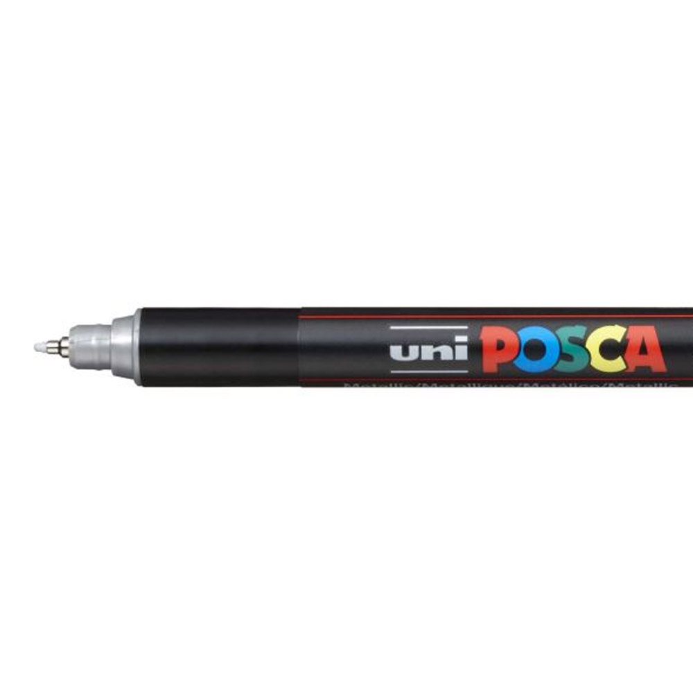 Caneta Ultra Fina Uni Posca PC-1MR Prata SUPERFÍCIE DO TRAÇO? 0,7mm É PERMANENTE? Caneta a base d’água, assim não sendo uma caneta permanente. É possível ter um efeito bastante duradouro em superfícies porosas e/ou ao aplicar uma camada de verniz em spray por cima da arte completa, mas, ainda assim, sempre sugerimos que utilize em objetos decorativos e que não precisem ser lavados com frequência. COMO É O ACABAMENTO APÓS SECO? Seu acabamento é Fosco É RECARREGÁVEL? Infelizmente não. Mas cada caneta dura uma média de 250-300 metros de escrita. QUAL O TEMPO DE SECAGEM APÓS APLICAÇÃO? Isso depende bastante da temperatura e umidade locais e em qual superfície a POSCA será aplicada. Quanto mais porosa, mais rápido é o processo de secagem. Num geral, a tinta seca em poucos minutos, mas sugerimos deixar de 2 a 5 horas para secar completamente. EM QUAIS MATERIAIS POSSO UTILIZAR A POSCA? Madeira, Metal, Vidro, Plástico, Resina, Vinil, Parede, Lousa, Tecido, Argila, Acrílico e Papel