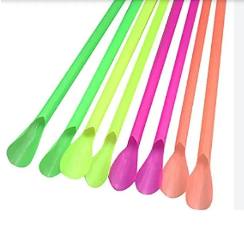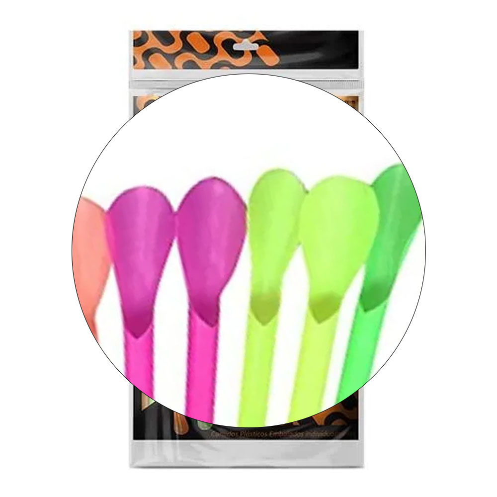 Funcionando como uma colher, especial para beber caipirinhas, drinks com frutas e bebidas densas. Coloridos Neon, experimente em luz negra.