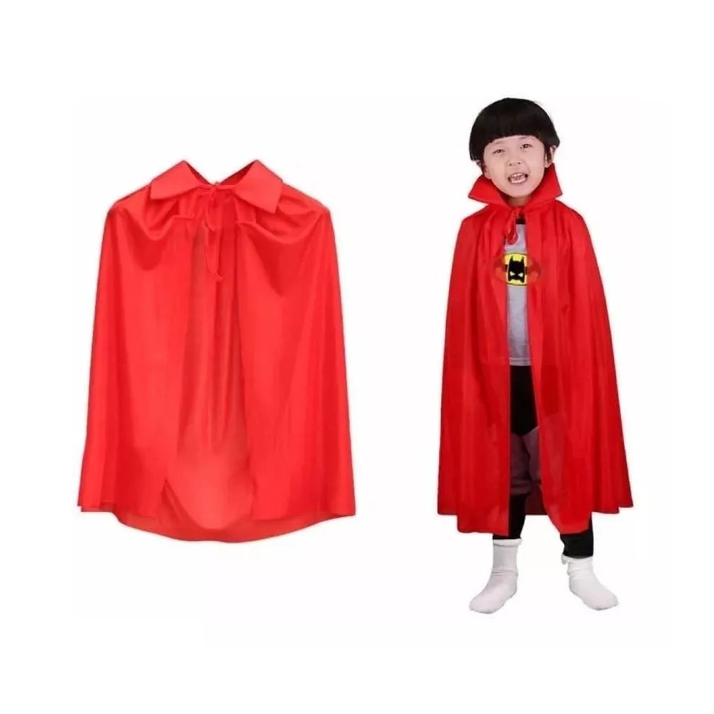 Capa Vampiro Simples Vermelho c/ Gola Alta Infantil Fantasia