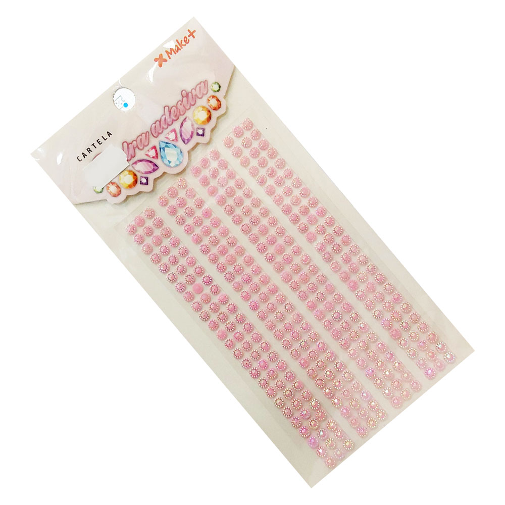 Cartela Pedra Adesiva 5mm Meia Flor Rosa Claro Make+