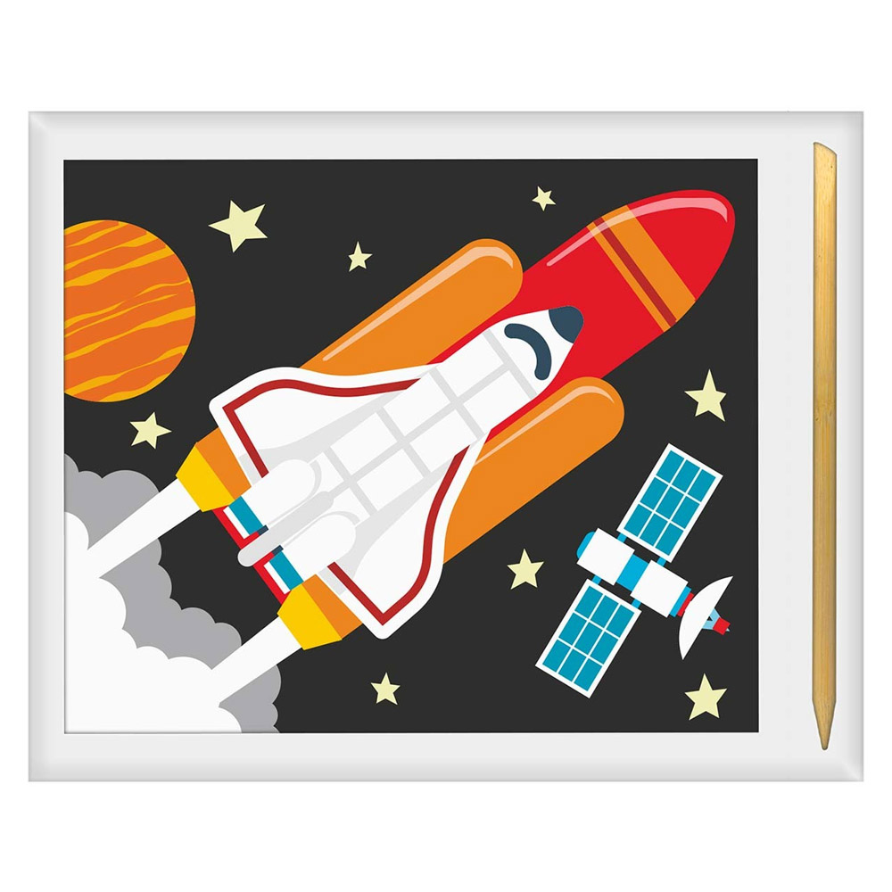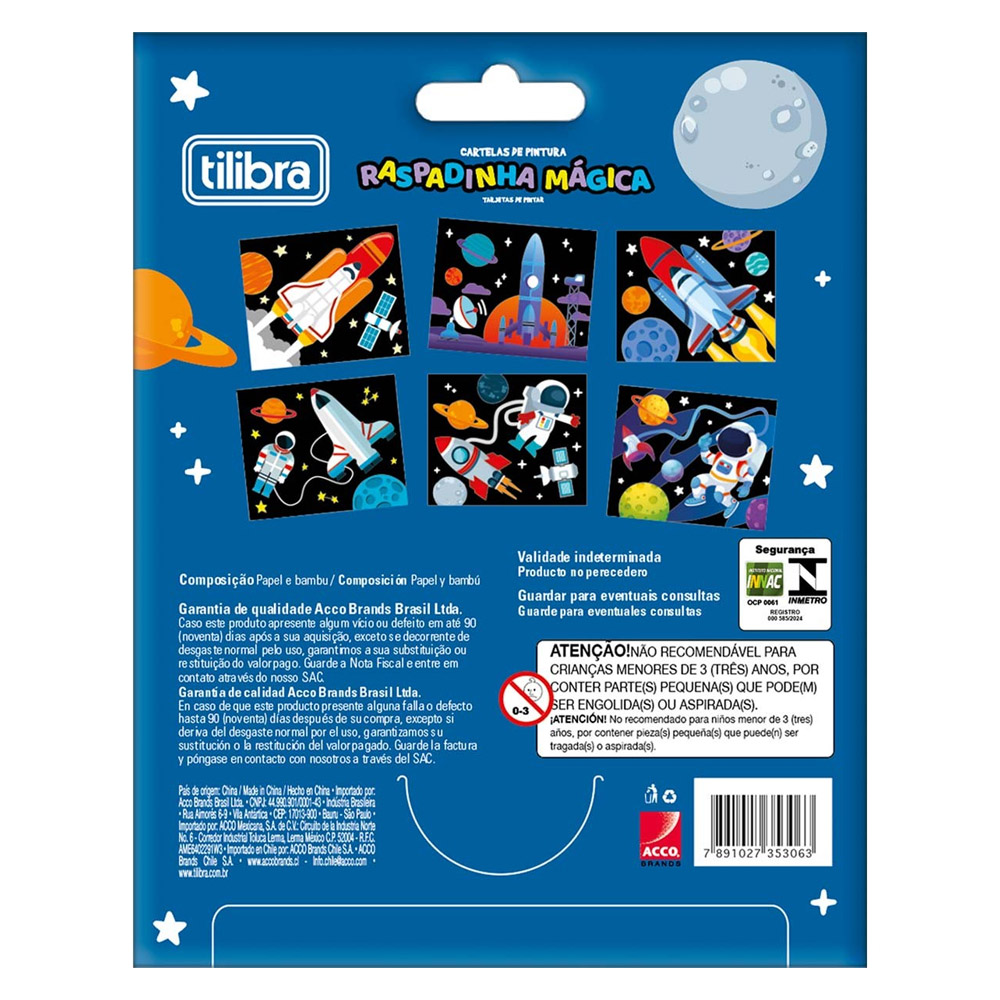 A Raspadinha Mágica oferece uma maneira curiosa e divertida de pintar, incentivando a coordenação motora, a percepção visual e a criatividade. Este produto, com temática espacial, é indicado para crianças a partir de 3 anos.