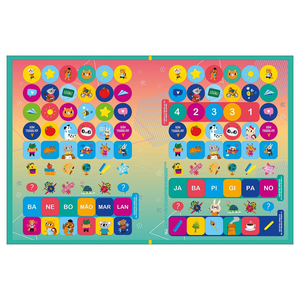 A Cartilha de Atividades de Sílabas Aprender, Brincar e Colorir possui 32 páginas, com atividades voltadas para a prática da escrita, especificamente para o aprendizado das Sílabas. Possui cartela adesiva com ícones relacionados às atividades e adesivos para que responsáveis e professores consigam estimular o desempenho da criança.