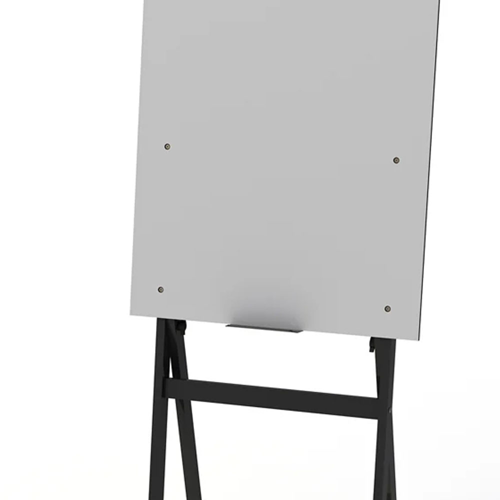 Sua tela (tampo) é feita de chapa de fibra e madeira MDF com acabamento branco 100% UV, ideal para uso de marcador de quadro branco. Além disso, possui um porta-bloco para papel de Flip Chart e porta caneta/apagador injetado em plástico. Possui pés injetados com pontas arredondadas para melhor estabilidade.