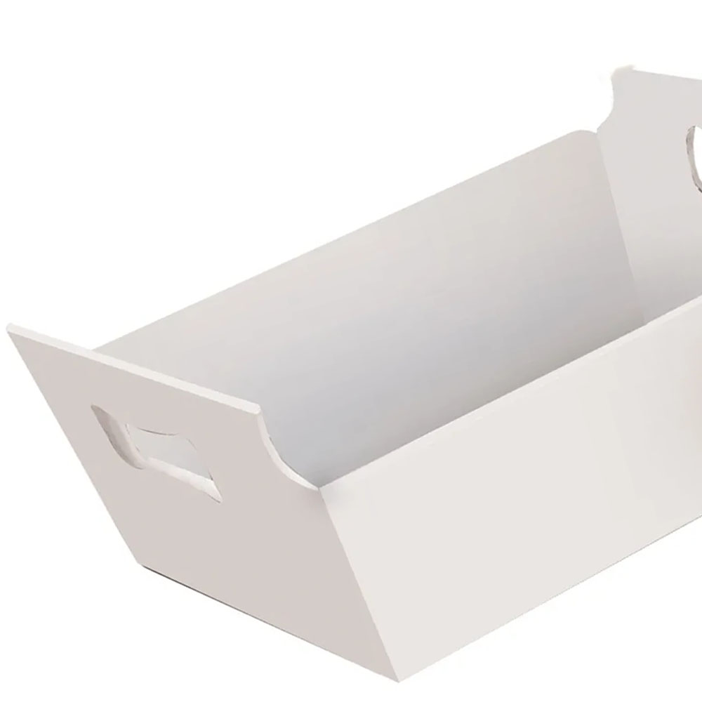 Material: papel cartao+papelao micro ondulado+pigmento color. Cesta de Cartão Liso Branco