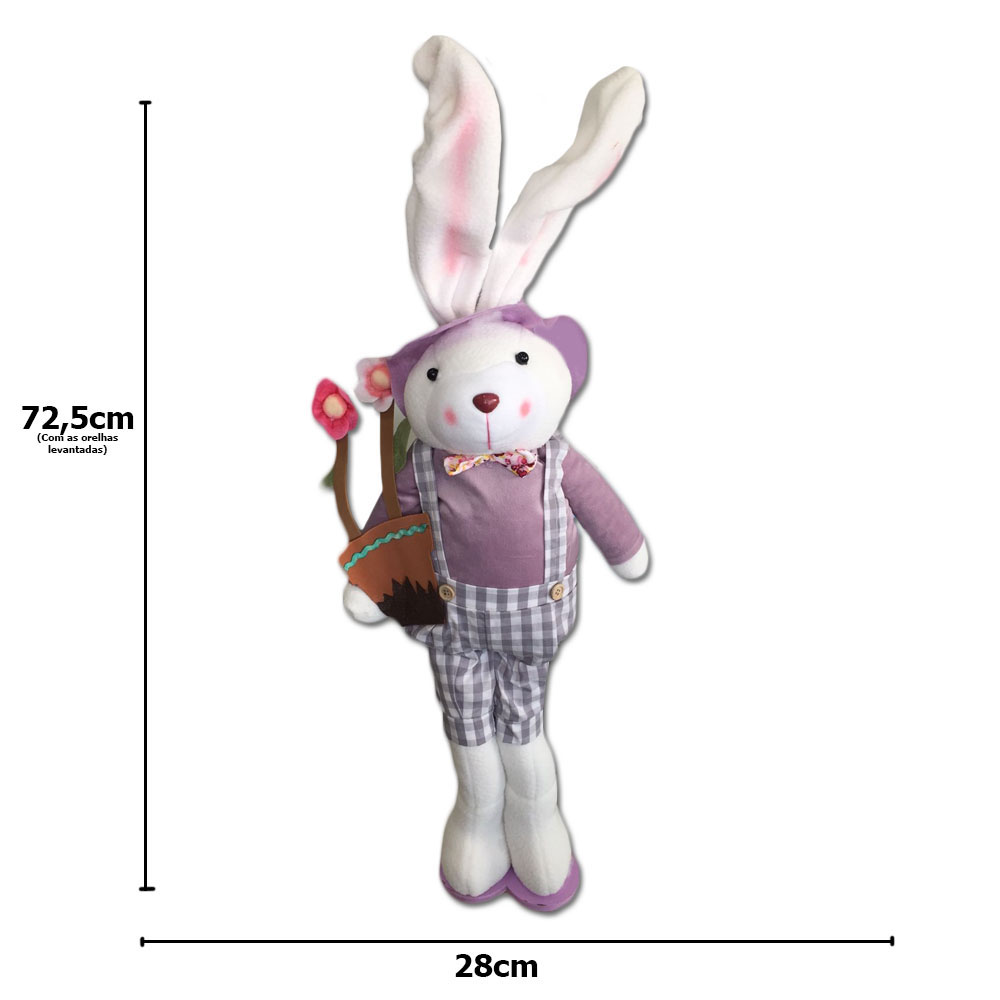 Medidas do coelho: 72,5cm(altura) x 28(largura) x 12(espessura)cm