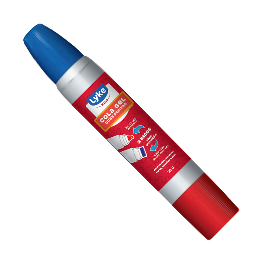 Cola gel LYKE de 2 pontas de 38g, um bico para detalhes e outros para áreas maiores, cola transparente é ideal para ser usado em papéis, tecidos, fotos e cartões.