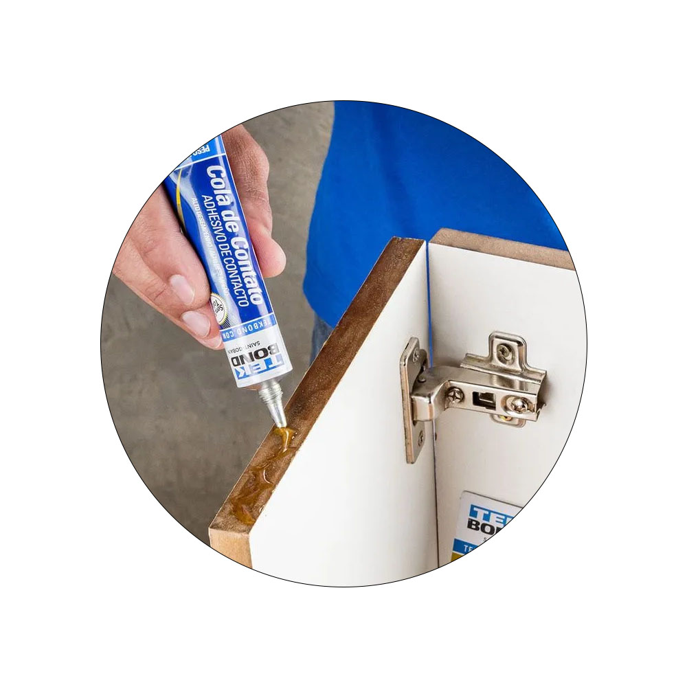A Cola de Contato Tekbond® é um adesivo de contato, à base de borracha de Neoprene, desenvolvida para a colagem de vários tipos de materiais entre si (ex.: madeira/madeira, couro/couro) ou combinados (ex.: madeira/couro). Fácil de usar, oferece secagem rápida, boa resistência à água e excelente resistência logo de início. PERIGO: Líquido e vapores altamente inflamáveis. Pode provocar irritação ocular e das vias respiratórias. Em caso de contato com a pele e os olhos: enxágue cuidadosamente com água durante vários minutos. No caso de uso de lentes de contato, remova-as, se for fácil. Continue enxaguando. Em caso de inalação: Remova a pessoa para local ventilado e a mantenha em repouso em uma posição que não dificulte a respiração. Caso sinta indisposição, contate um centro de informação toxicológica ou consulte um médico. Mantenha fora do alcance de crianças.