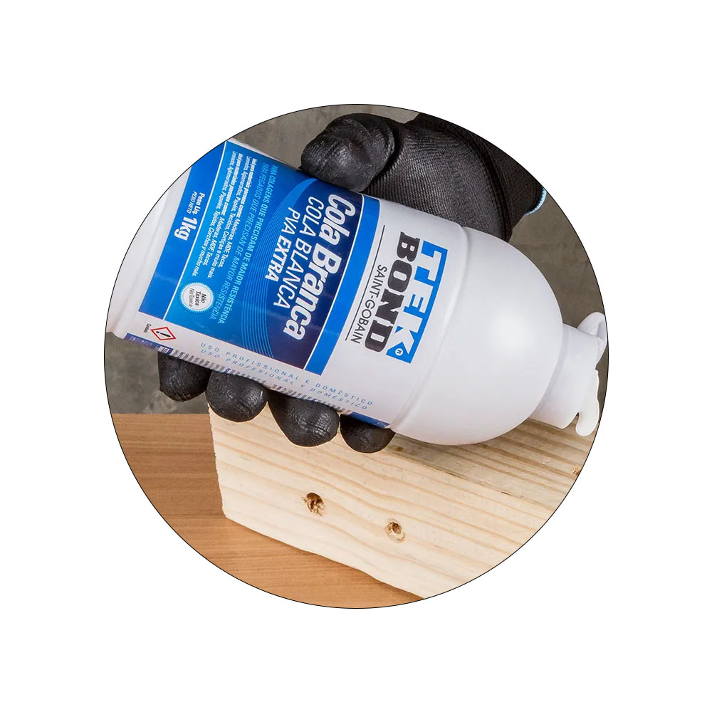 Uma cola de alto desempenho, versátil e resistente, ideal para trabalhos em madeira. Proporciona aderência excepcional e acabamento impecável. A Cola Branca PVA Extra da Tekbond foi cuidadosamente desenvolvida para atender às demandas mais exigentes de colagem de madeira. Com uma fórmula avançada à base de PVA (Acetato de Polivinila), oferece um desempenho excepcional em diversas aplicações no setor moveleiro. Por isso, é a cola preferida para projetos nessa área. Outra grande vantagem é o fato de não ser tóxica.