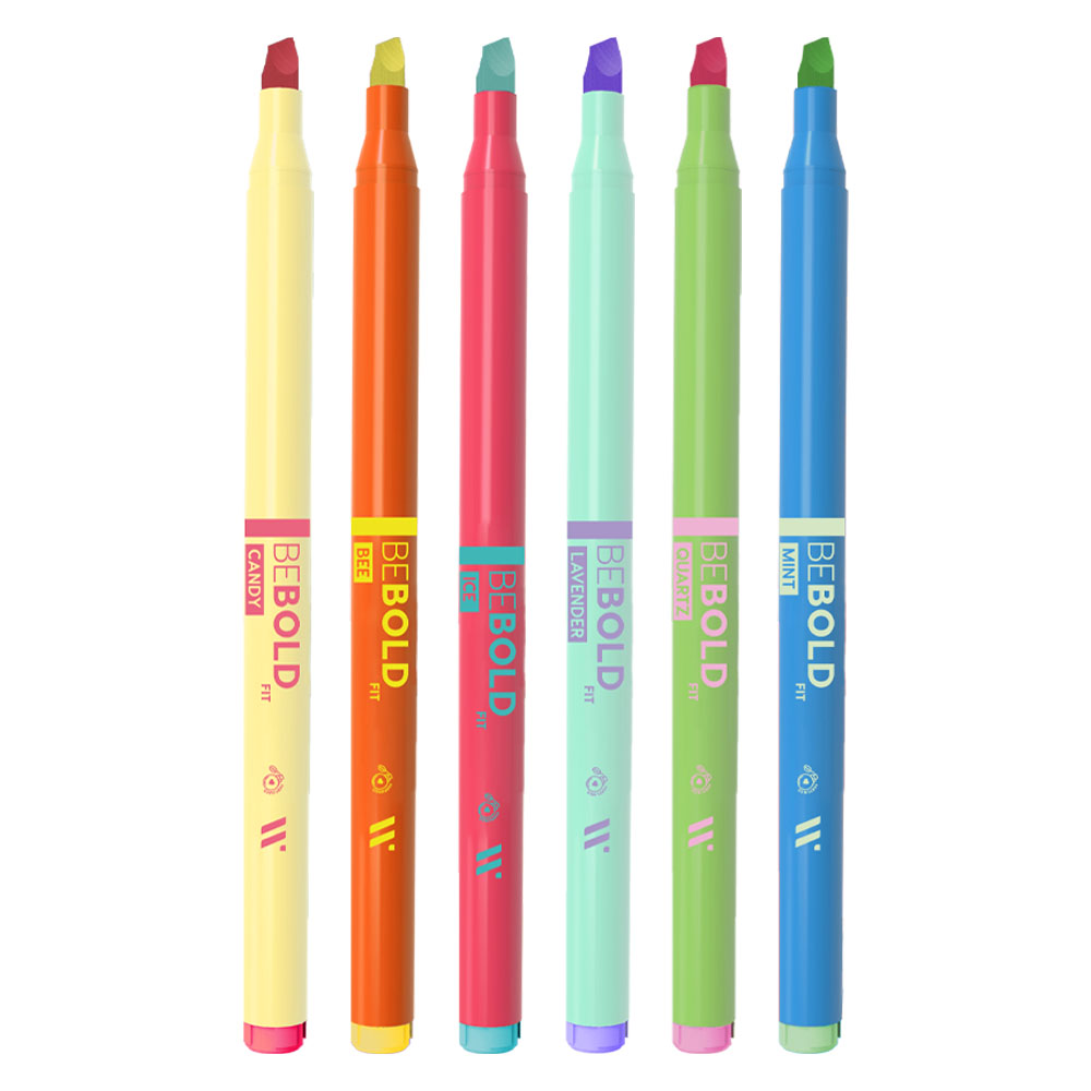 A Caneta Marca-Texto Be Bold Fit tem a ponta chanfrada e flexivel. Ela tem uma longa duração, não secando mesmo destampada por até 24h. Tinta de alta pigmentação à base de água, além de ser perfumada.om a ponta chanfrada de 2-6mm, a Marca Texto BE BOLD FIT Newpen permite uma escrita precisa e a possibilidade de desenhar, ilustrar e colorir com facilidade. Além disso, ao mesclar duas cores, você pode criar tonalidades diferentes para dar ainda mais destaque aos seus textos.