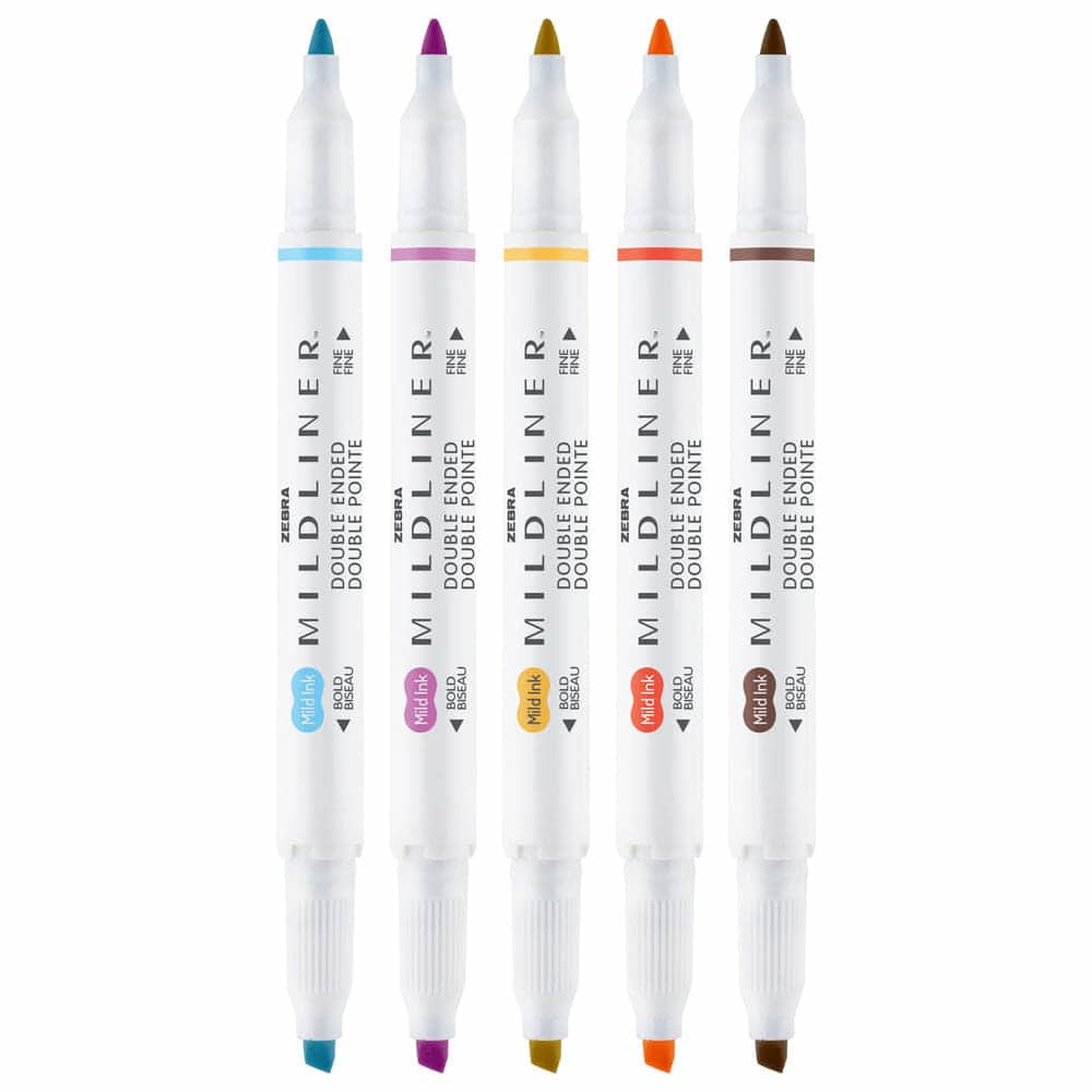 O Mildliner da Zebra apresenta uma paleta de cores incríveis, que aparecem suavemente no papel. Possui ponta chanfrada (marca-texto) e fina para todas as aplicações de letras e marcações, além de seu lindo design conhecido em todo o mundo!