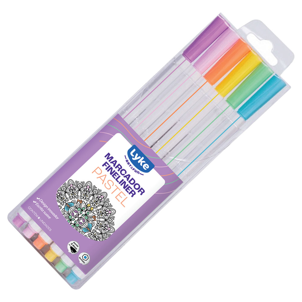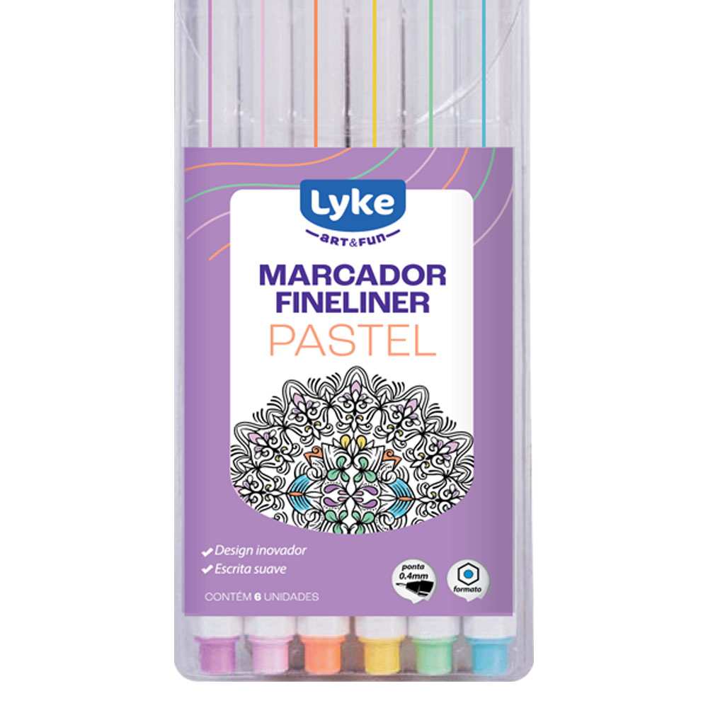 Fineliner LYKE com 6 cores em tons pastel tem design inovador e uma ponta fininha e resistente que garante traços precisos e perfeitos para compor seus projetos. A tinta seca rapidamente e não borra ou mancha o papel escrito. É indicado para usar em anotações do dia a dia no trabalho e também para fazer detalhes em desenhos artísticos e letterings.
