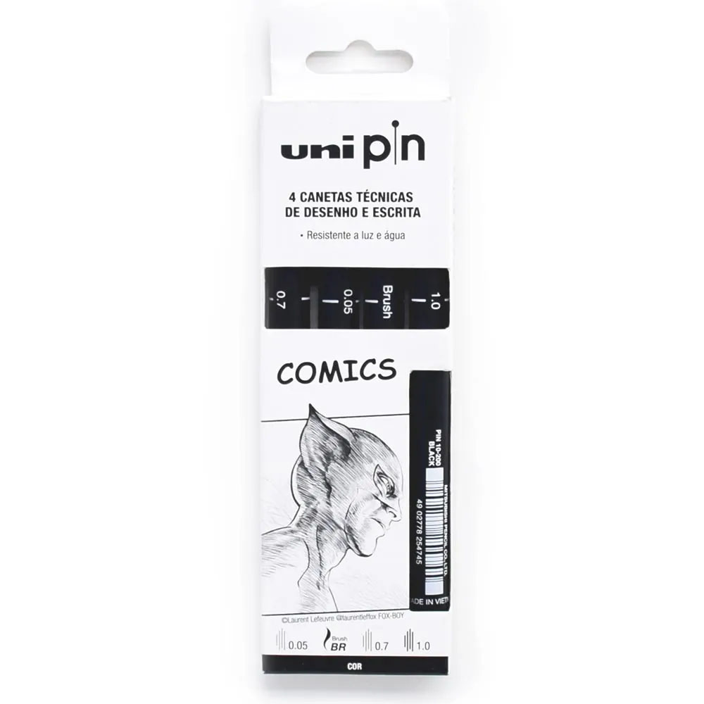O Kit Caneta Uni Pin Comics é perfeito para quem busca traços precisos e marcantes em ilustrações, quadrinhos, desenhos técnicos e escritas detalhadas. Esse conjunto reúne quatro canetas com pontas variadas (0.05, 0.7, 1.0 e Brush), oferecendo versatilidade para contornos finíssimos, preenchimentos e efeitos de sombreamento. A tinta preta pigmentada garante linhas intensas, resistentes à luz e à água, proporcionando maior segurança para trabalhos artísticos e técnicos. As pontas firmes deslizam com suavidade no papel, tornando a experiência de uso agradável e precisa, seja para profissionais ou iniciantes. Combinando qualidade e praticidade, este kit é uma escolha indispensável para artistas, designers e amantes do desenho. Contém: 4 canetas técnicas (0.05, 0.7, 1.0 e Brush).