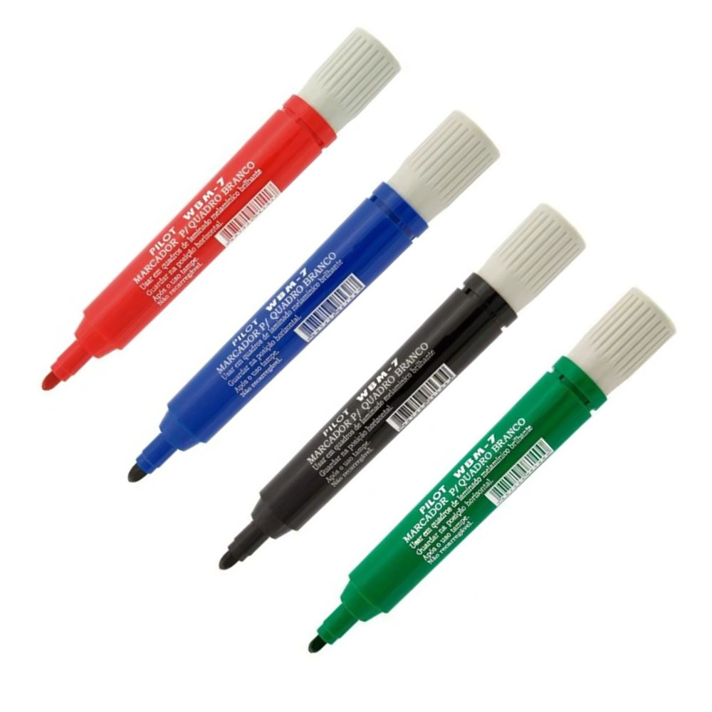 Desenvolvido especialmente para uso em quadros brancos, o marcador PILOT Quadro Branco Recarregável apresenta uma ponta de acrílico que, além de garantir uma escrita suave, não danifica o quadro. Sua tinta especial apaga facilmente, deixando a superfície limpa e sem manchas.