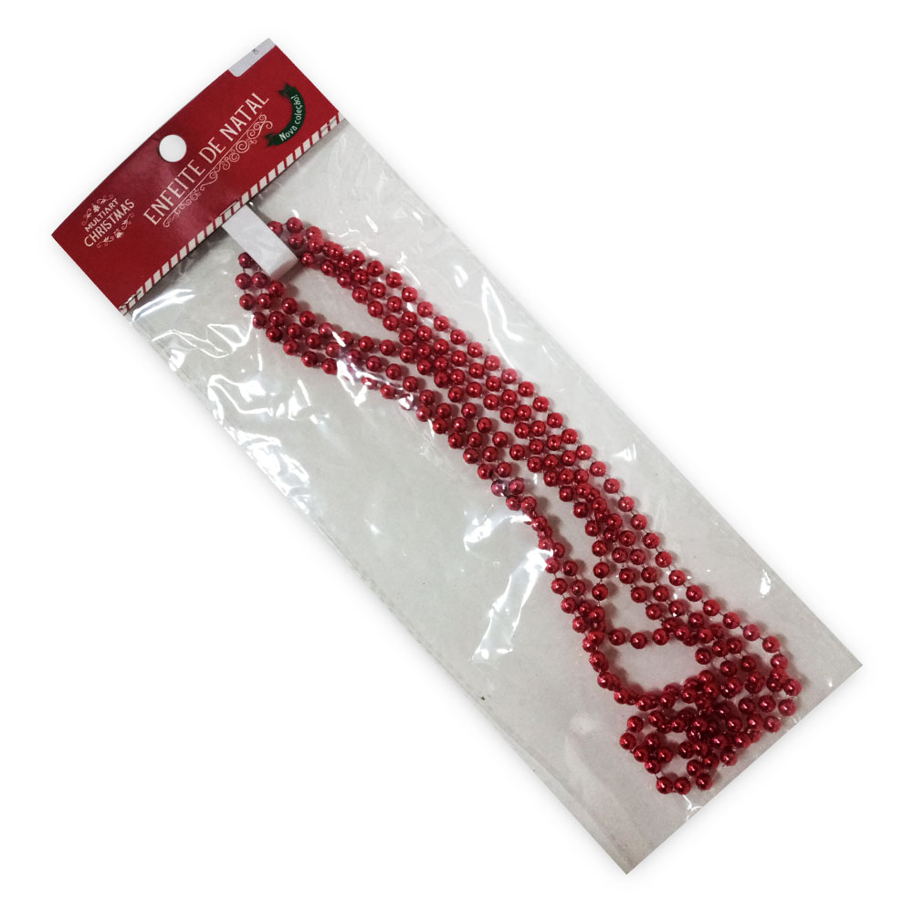 Enfeite Natal Cordão de Bolinhas 180cm Vermelho Multiart
