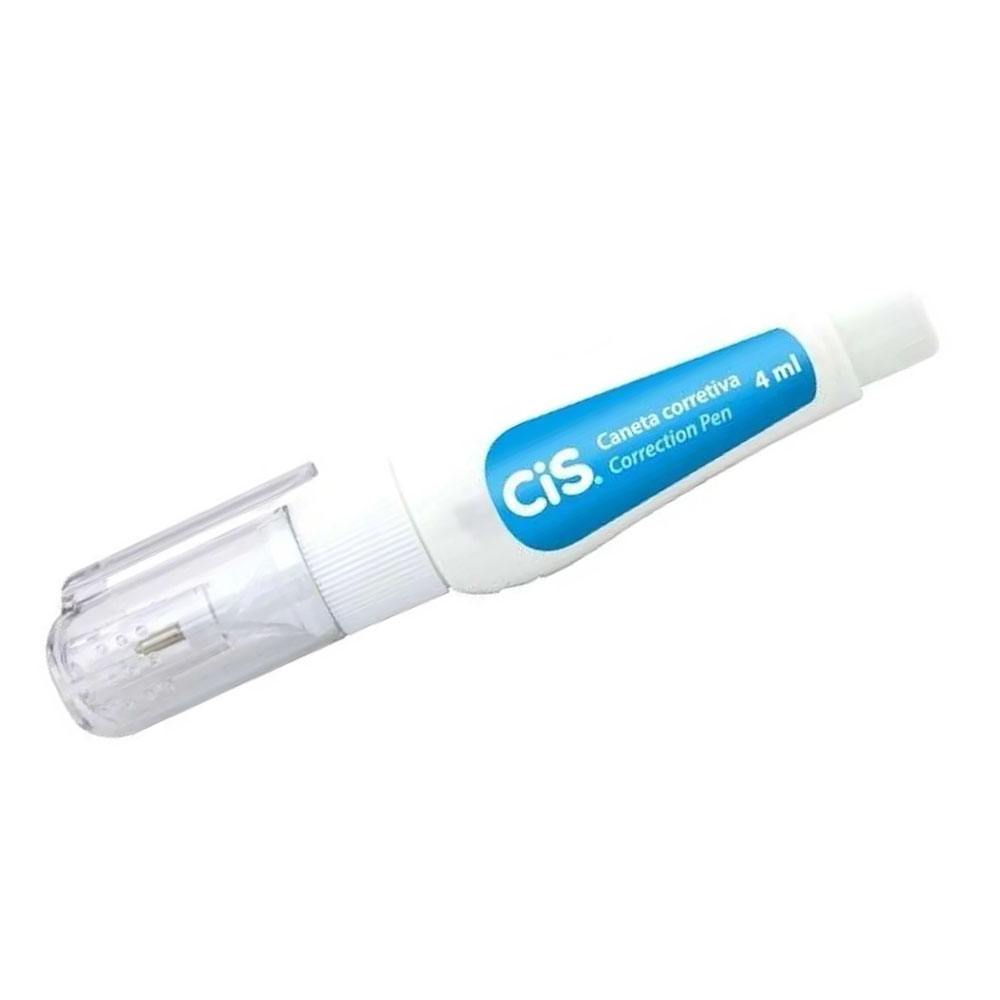 Caneta corretiva CIS Correction Pen 4ml, possui design ergonômico e ponta metálica, fácil de usar, basta pressionar a caneta sobre o papel para ela liberar a tinta. Ideal para o dia a dia na escola ou escritório.