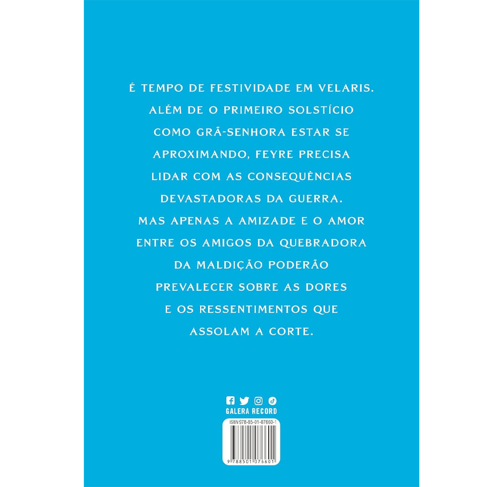 Enquanto vive primeiro Solstício como Grã-Senhora, Feyre ainda lida com os horrores do passado recente e percebe que seu parceiro e sua família têm mais cicatrizes do que ela esperava – cicatrizes que podem impactar o futuro, e a paz, de sua Corte.