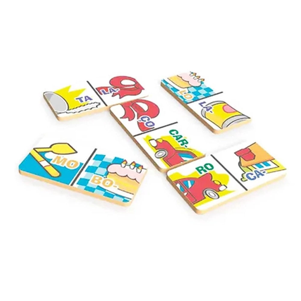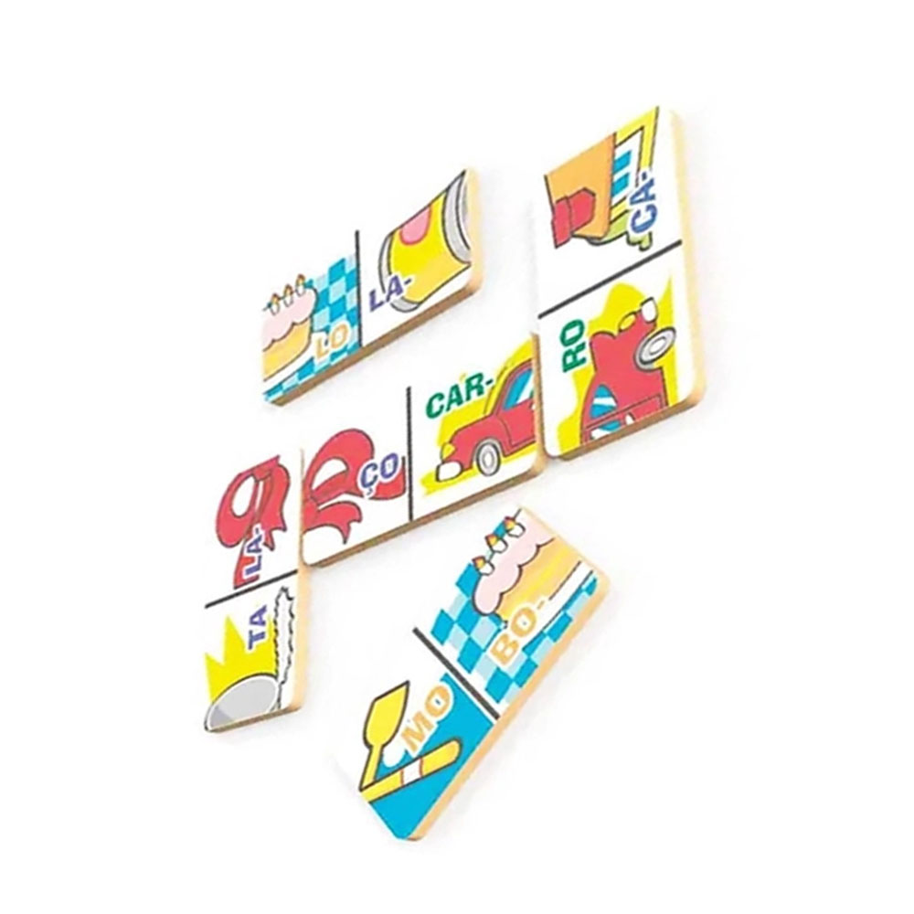 Jogo de Dominó Sílabas Minha Escolinha Xalingo Desenvolve a cordenação motora e o pensamento lógico,enquanto apresenta a escrita de 28 palavras dissílabas. Com 28 peças fabricadas em madeira. Indicação de idade: 3 anos Atenção: Imagem meramente ilustrativa. As tonalidades de cores podem variar de acordo com as configurações de seu monitor ou celular. O Fabricante/Fornecedor pode alterar detalhes nos produtos, acessórios, etc, sem aviso prévio.