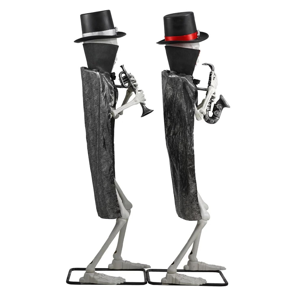 A decoração super arrepiante para seu Halloween! Dois duetos musicais animados de esqueleto com luzes LED. olhos, música e animação ativadas por movimento, com esqueletos interagindo uns com os outros. Para uso interno e externo.