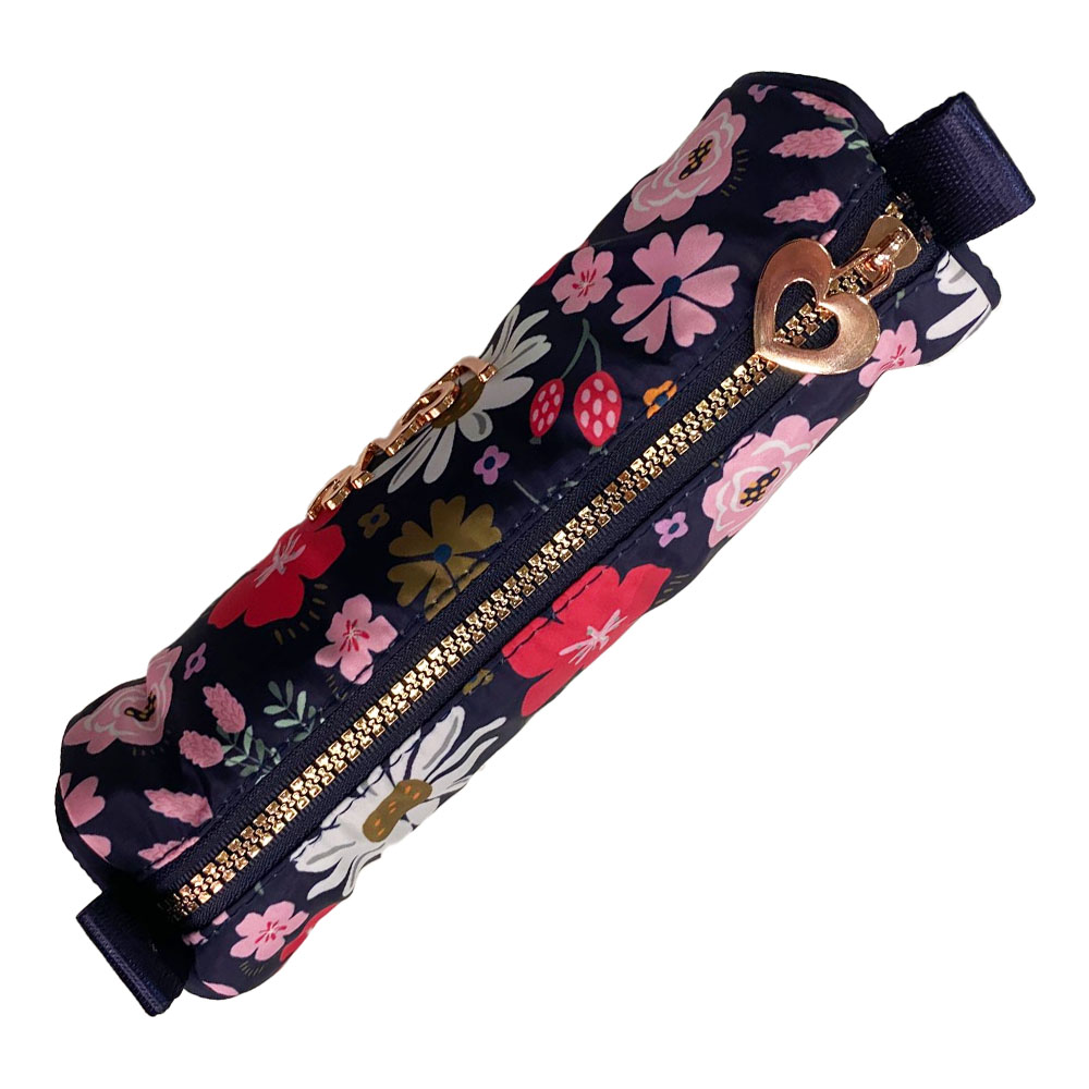 Fechamento em ziper rose gold com puxador metalico no formato de coração na mesma cor.