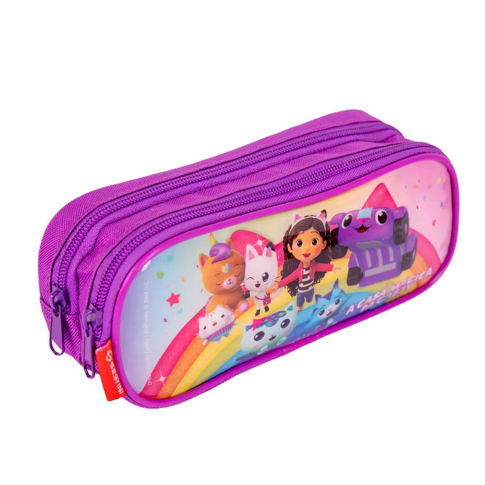 Entre para o mundo gatástico da Gabby com o Estojo 2 Compartimentos Gabby M Rainbows – Colorido que leva a estampa exclusiva da Gabby e seus amigos num lindo mundo de fantasia e diversão! Com 2 compartimentos espaçosos com fechamento em zíper, esse item é perfeito para organização dos lápis, canetas e demais pertences.