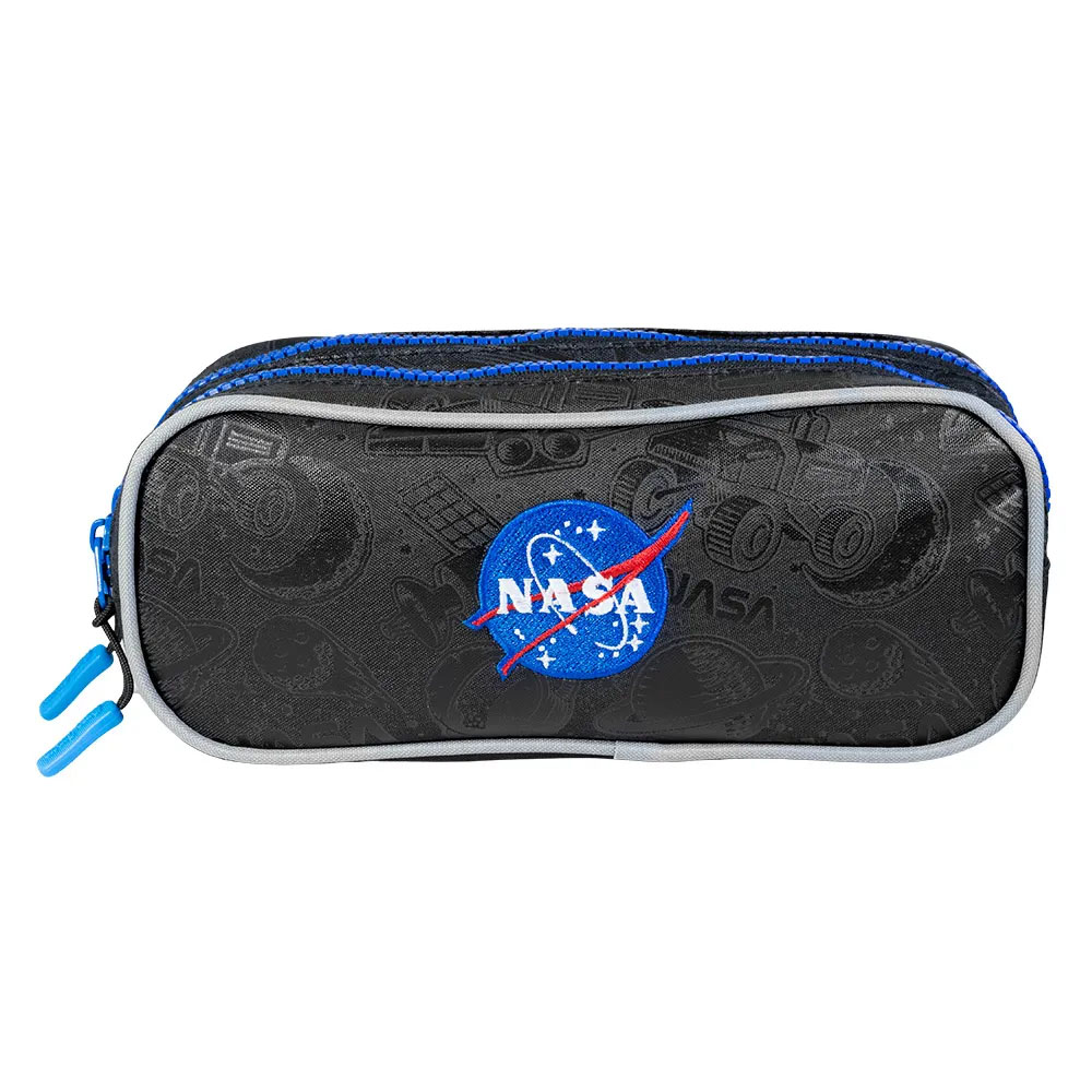 O Estojo Duplo NASA é pra quem quer manter tudo no lugar com visual inteligente e cheio de atitude. Feito em poliéster resistente, conta com patch bordado, etiqueta emborrachada, puxadores com corda e zíper tratorado. Seus dois compartimentos são ideais pra separar os itens e facilitar a rotina de estudos — tudo com o selo de quem pensa além!