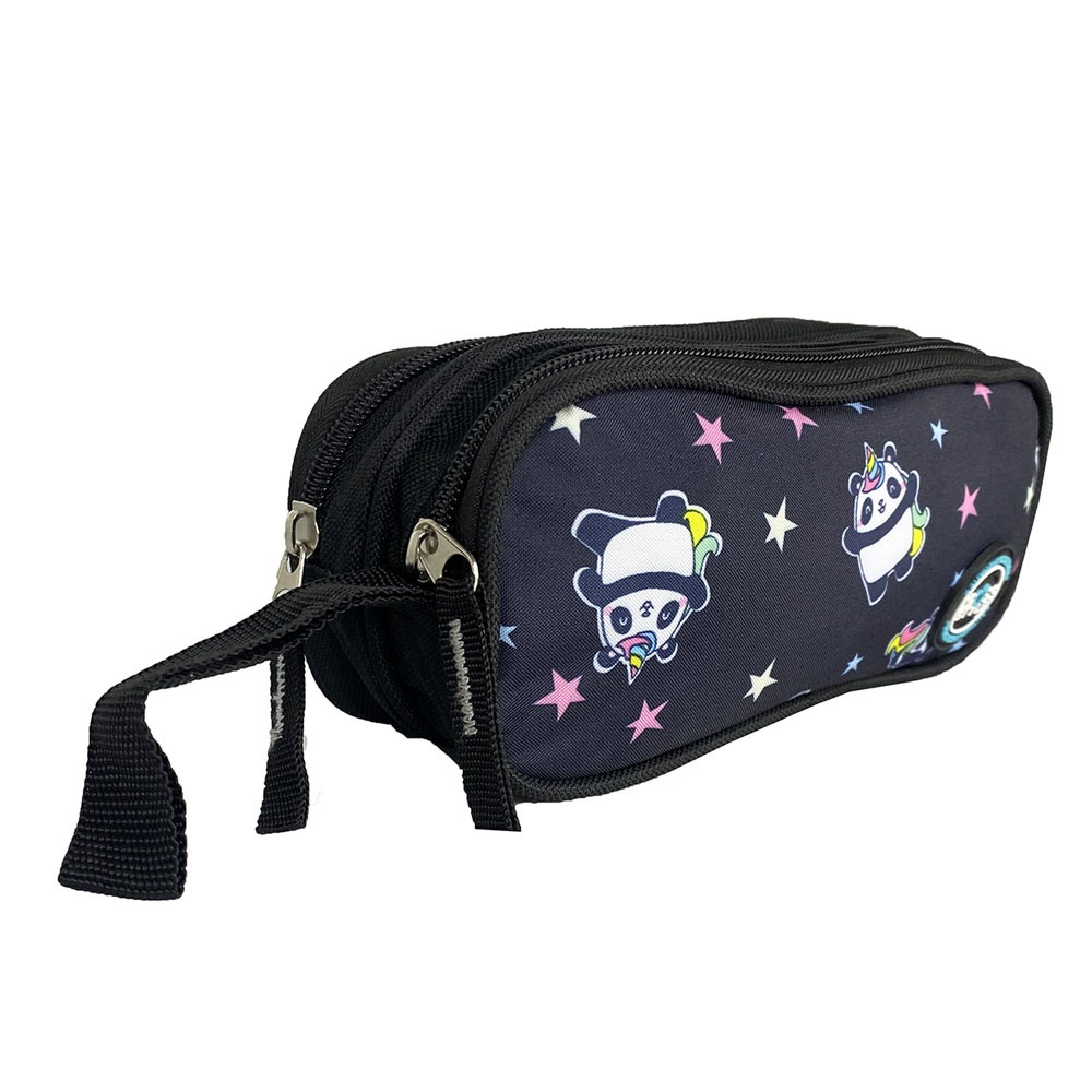 Estojo 2 Divisórias Cross Style Panda Unicórnio Preto Clio