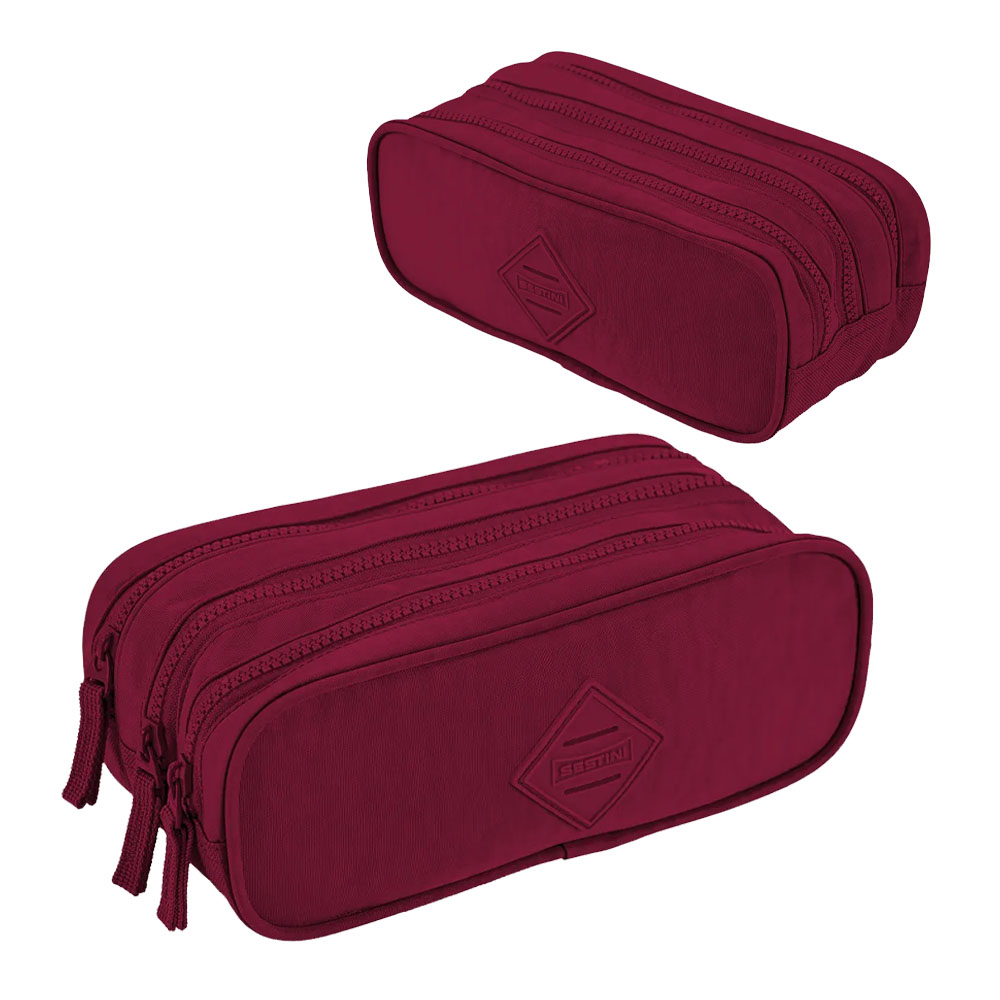 Estojo 3 Compartimentos Crinkle possui fechamento com zíper, 3 compartimentos, logo em borracha e formato retangular.