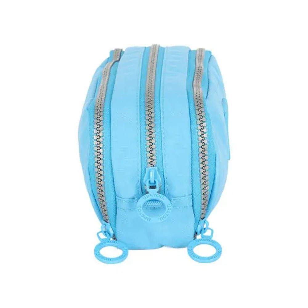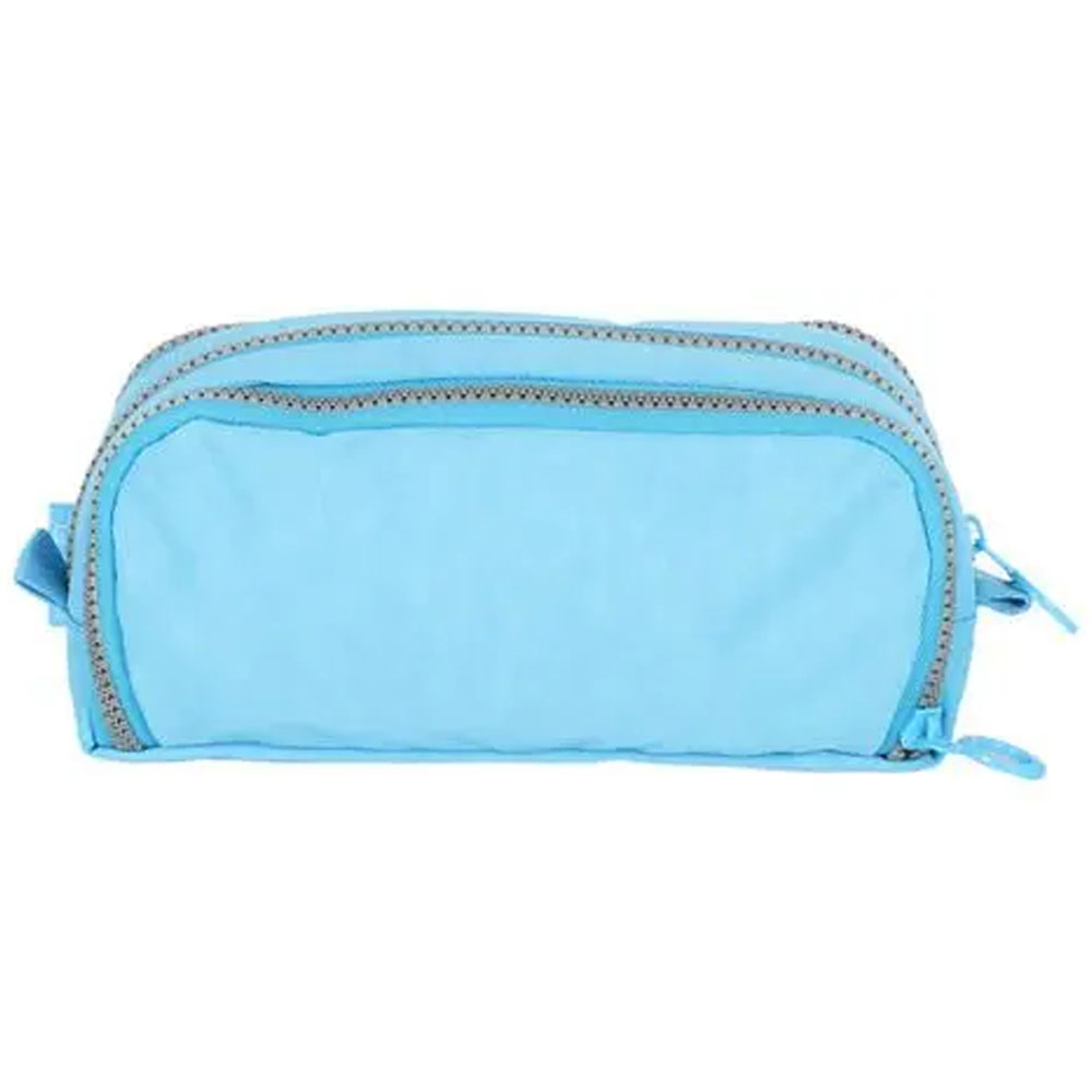 Estojo em Crinkle, possui três compartimentos separados. Possui um total de 16 elásticos para lápis/canetas (não incluídos) nos dois bolsos laterais, sendo 8 elásticos em cada bolso. O bolso central não possui elásticos.