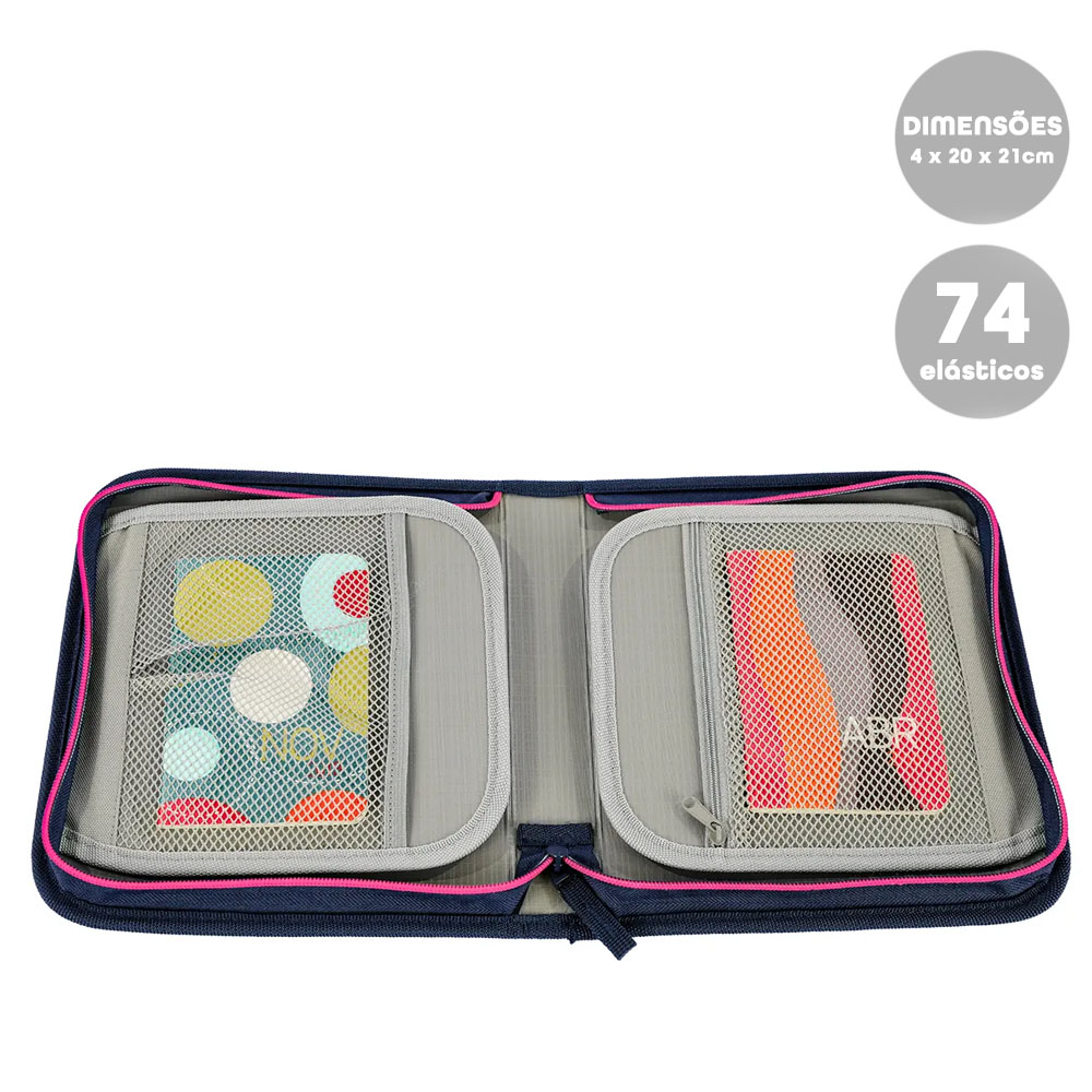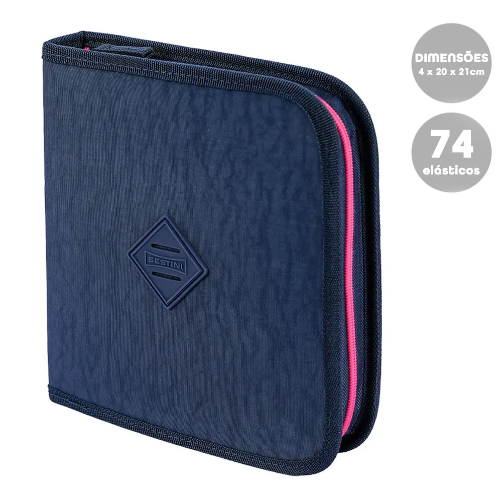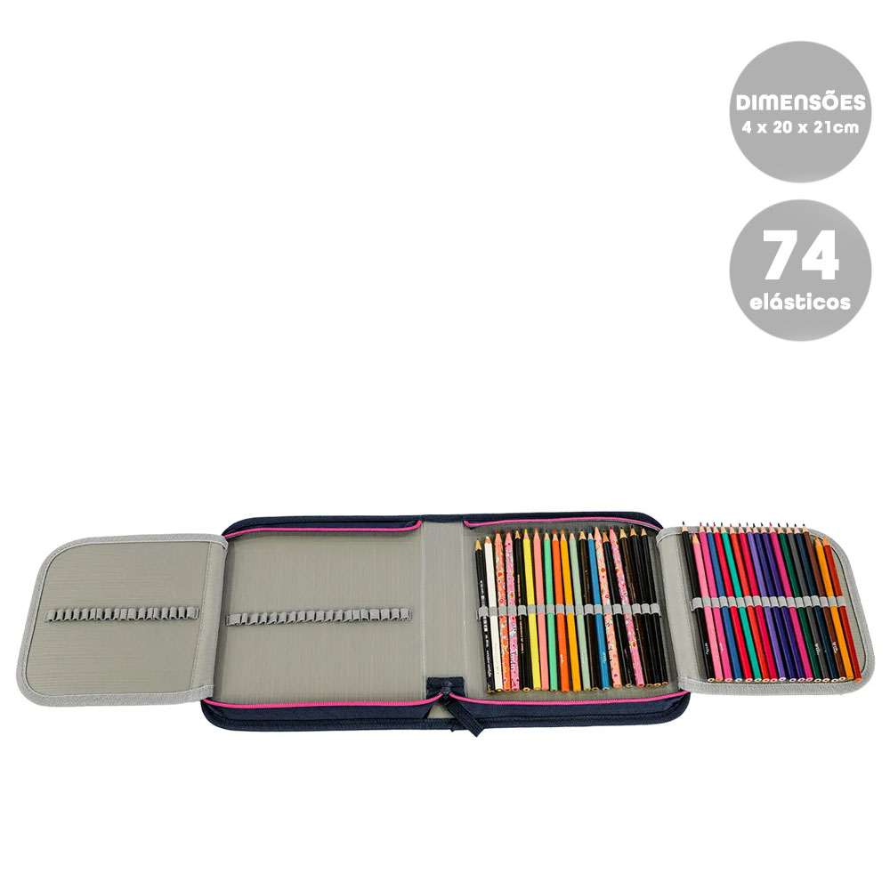 Além de facilitar seu dia a dia na escola, é estruturado, tem formato retangular, possuindo diversos elásticos e duas abas para compactar o maior número de lápis e canetas, tendo cada lado uma redinha para armazenar seus materiais.