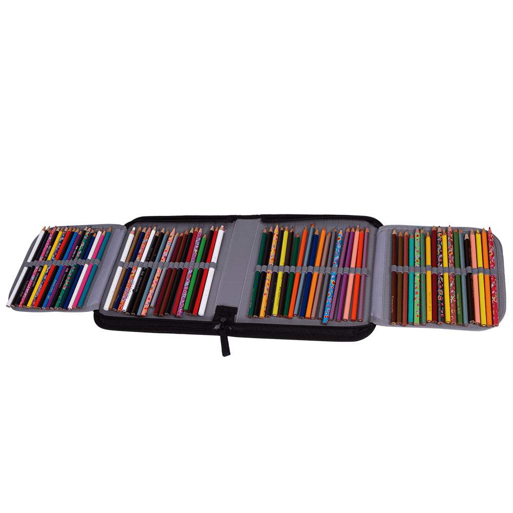 O Estojo Artístico Crinkle Preto é a nova tendência! Produto no formato retangular de material resistente utilizado por quem deseja ter seus materiais escolares de fácil acesso e organizados,possuindo diversos elásticos e duas abas para compactar o maior número de lápis e canetas tendo cada lado uma redinha para armazenar seus materiais.