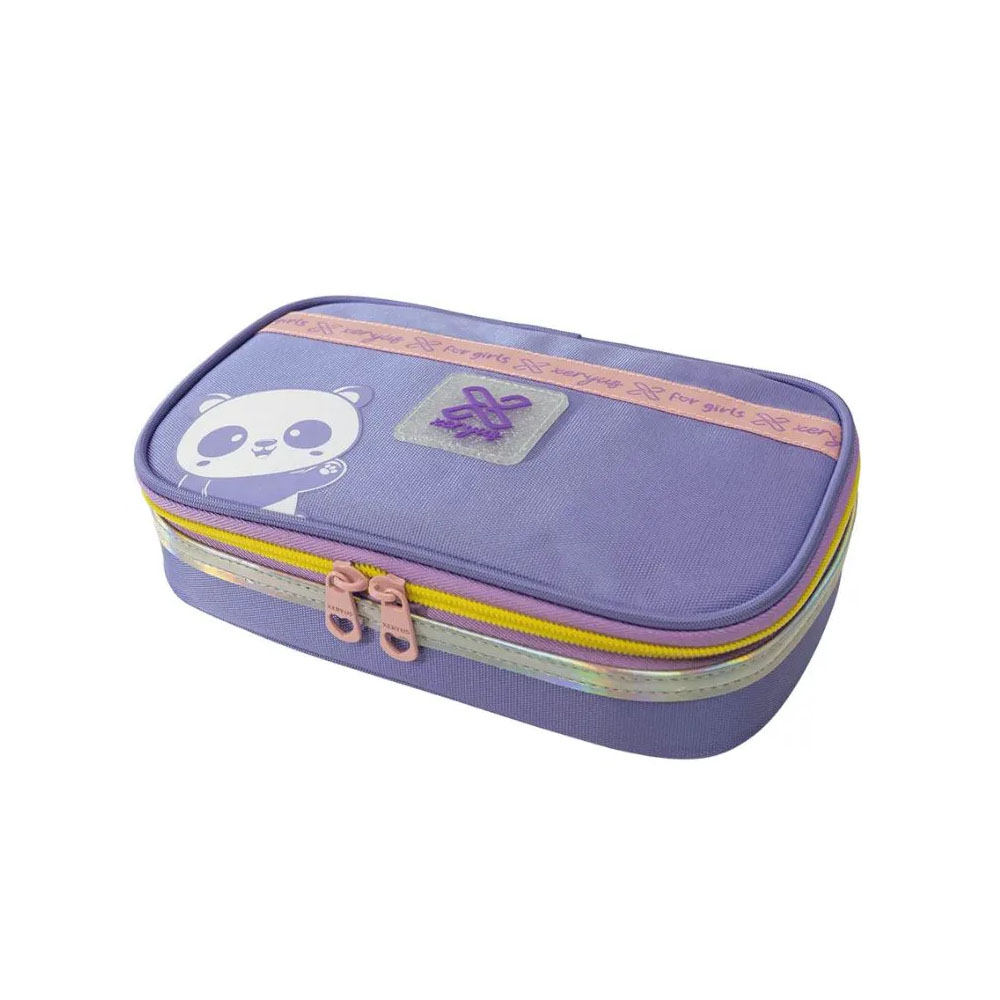 O Estojo Box Utility Panda Lilás é perfeito para quem busca espaço. Com um design utilitário, cheia de detalhes estilosos exclusivos e PVC com efeito holográfico.