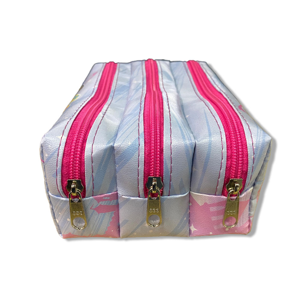 Com uma estampa durável e cores vibrantes, zíper e puxador resistentes, design moderno e material impermeável, ele oferece qualidade premium para o dia a dia escolar. Além disso, é espaçoso o suficiente para todos os materiais, mas compacto para caber facilmente na mochila. Proporcione a sua filha segurança e estilo na escola com nosso estojo escolar de alta qualidade.