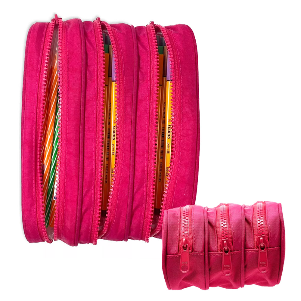 Estojo Triplo Grande Academie Pink Tilibra Possui 3 compartimentos Fechamento em zíper não possui elásticos.
